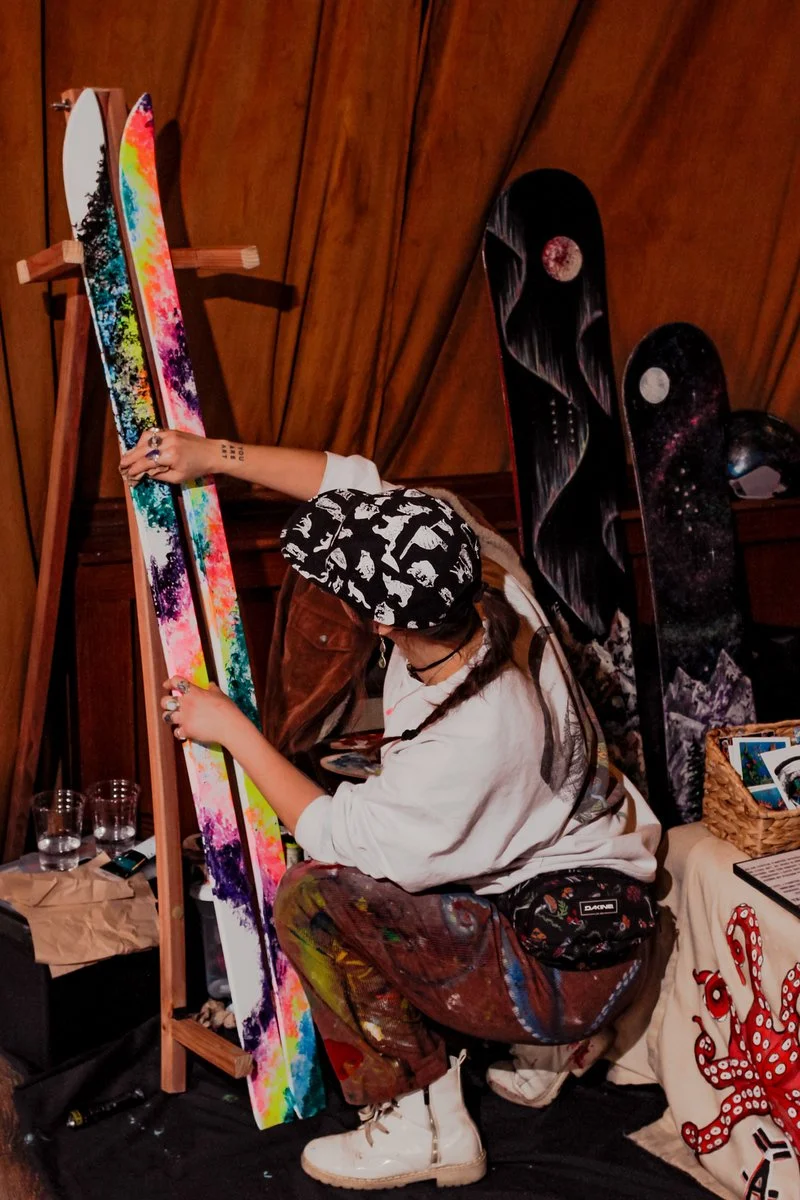 Welcome to AFEVE-R-DREAM, where we believe art and the mountains are deeply connected. Each piece is crafted from repurposed snow gear, born from a meditative creative process that brings a visionary quality to every design. Learn more about the journey and the mission behind my work.